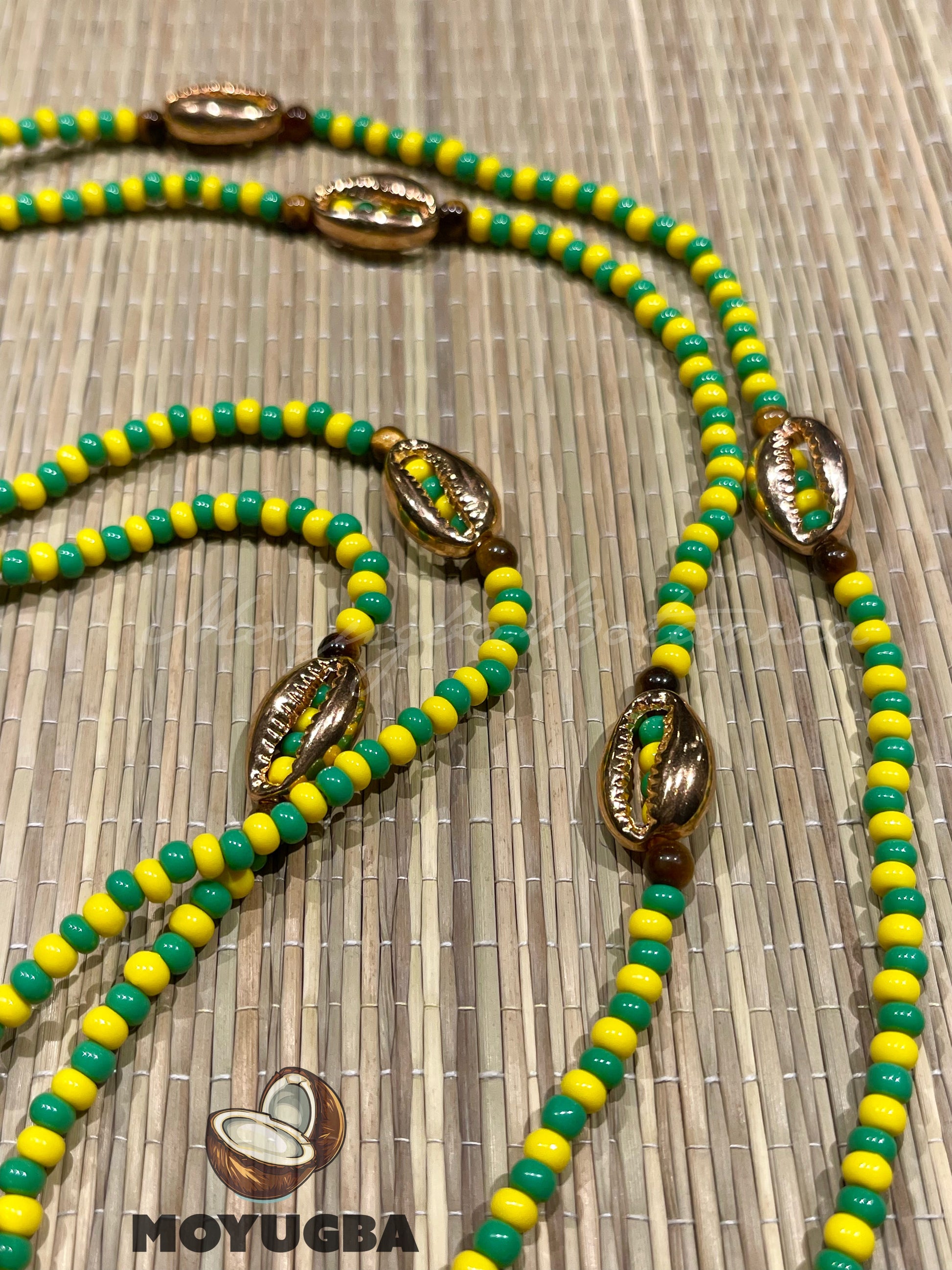 IFA ORULA Necklace with Cowrie/Tiger Eye Beads - Collar de Orula.