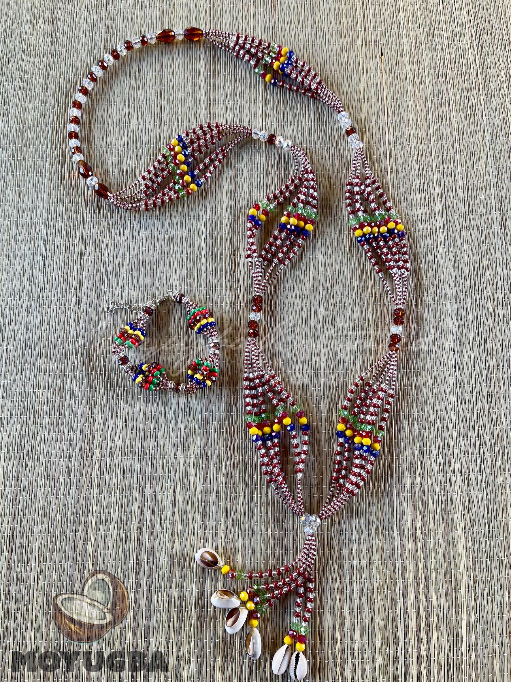 Embrace the powerful energy of Orisha Aggayu with this stunning mazo and bracelet set. This mazo is designed to honor the spirit of Aggayu, known for bringing strength and stability. Adorn your wrist with the matching bracelet, featuring vibrant colors and symbolic charms that pay tribute to this revered deity. Elevate your spiritual practice and style with this unique set, perfect for those seeking connection to Orisha traditions and sacred energies.