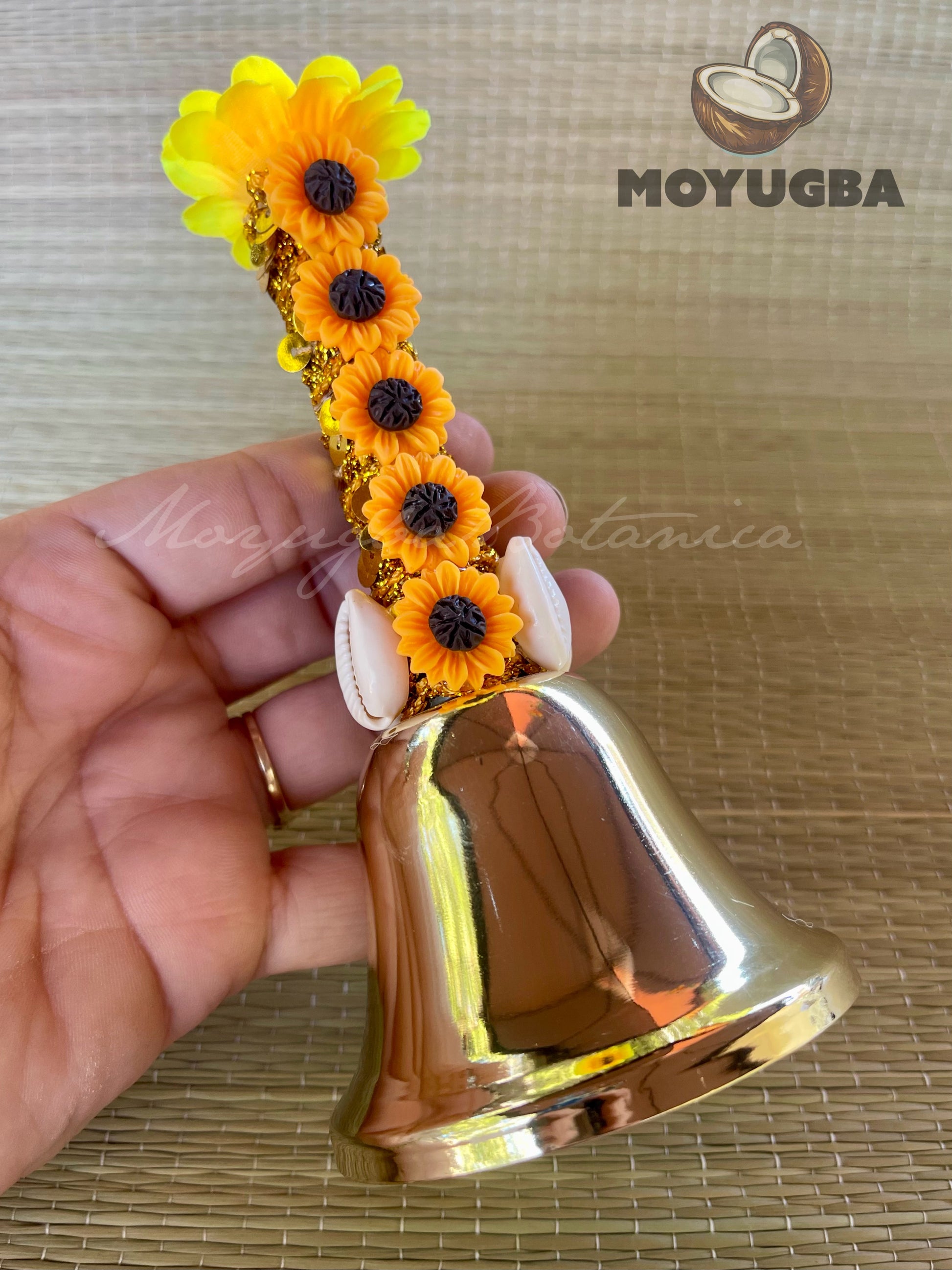 Oshun Bell with 5 Sunflowers and 5 Cowrie Shells - Santeria/Yoruba
