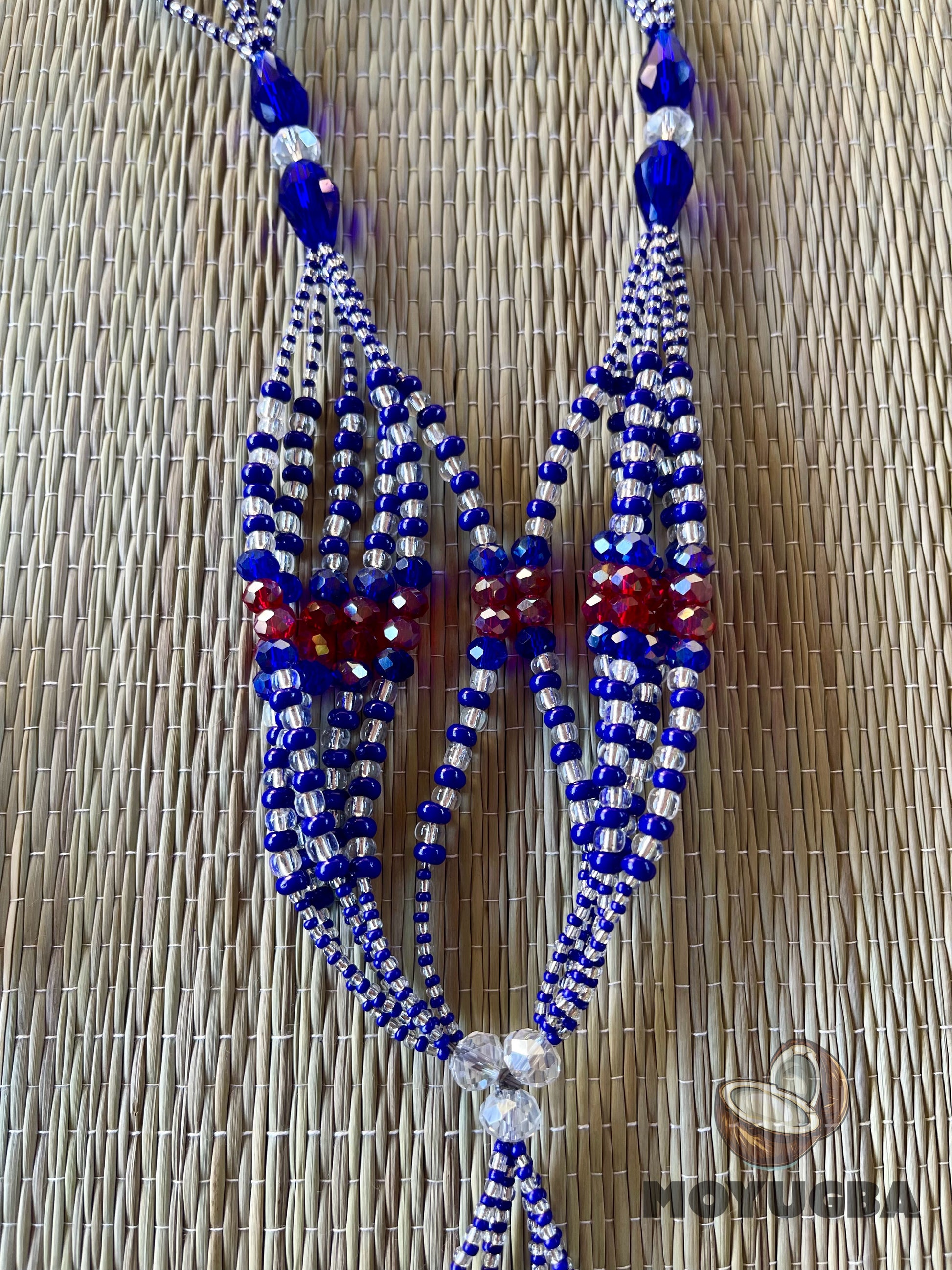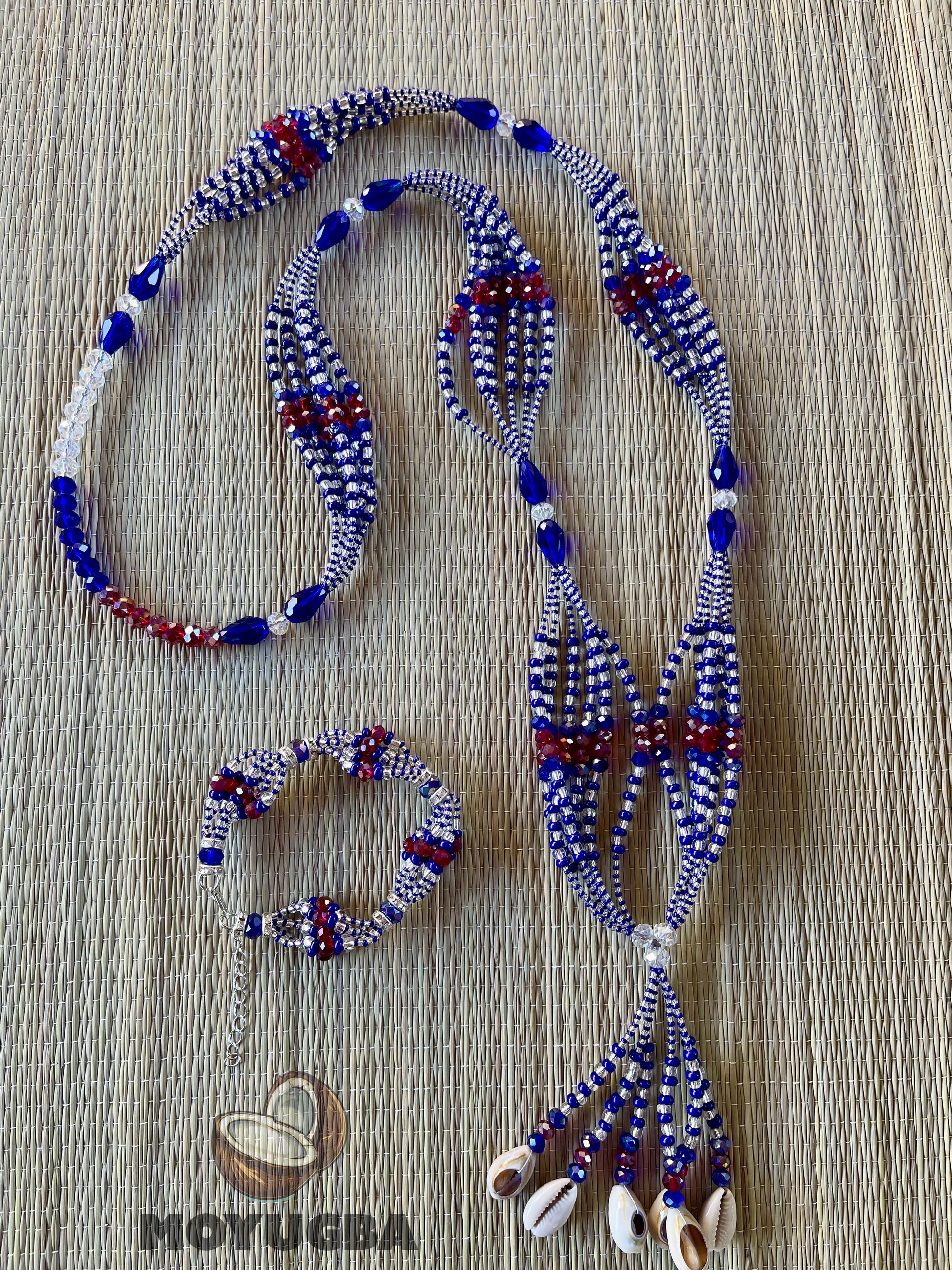YEMAYA OKUTE Blue/Red Set - Seed Beaded Mazo and Ilde